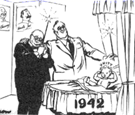50.(2019·山东中考真题)下图漫画中,罗斯福和丘吉尔手中各拿着一根魔术棒,在庆祝一个1942年诞生的被称为“联合”的新生儿。这个“新生儿”是【 】