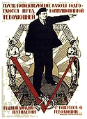 52.(2019·陕西中考真题)下图是一幅苏联海报:列宁身旁左右农民和工人举着“全世界无产者联合起来”的旗帜。在他背后是一轮初升的太阳。海报的主题可能是【 】
