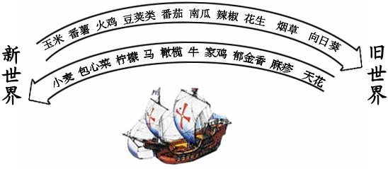 7.(2017·河南中考真题)哥伦布到达美洲后,南美洲的木薯传入非洲和亚洲,土豆传入西欧,地瓜和玉米流入中国;而其他地区的动植物,如小麦、牛、绵羊、猪等,也传入了美洲。材料表明新航路开辟【 】