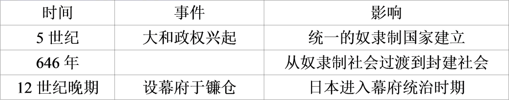 47.(2014·黑龙江中考真题)日本从奴隶社会过渡到封建社会的标志性事件是【 】