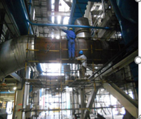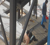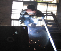 212.图示现场巡视安全检查,发现一处高处电焊作业,火花飞溅,正确的做法是下列选项中的()。
