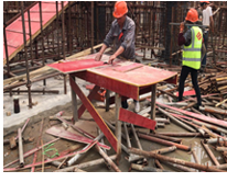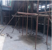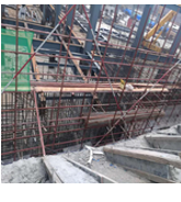 202.下图是某施工现场为楼梯施工搭设的支撑体系,请指出下图中的安全隐患()。