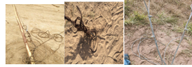 166.如图所示,监理工程师在基础浇筑前进行巡视检查时,发现施工现场存在安全隐患,根据《电力建设安全工作规程第2部分:电力线路》(DL5009.2-2013)规定,指出该施工现场存在哪些下列选项中的安全隐患()。