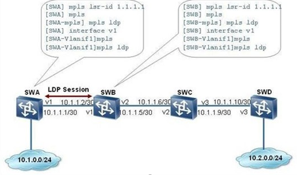 16.如图所示,在网络中配置了MPLSLSP,并在SWA和SWB之间实现本地LDP会话,则以下说法正确的是: