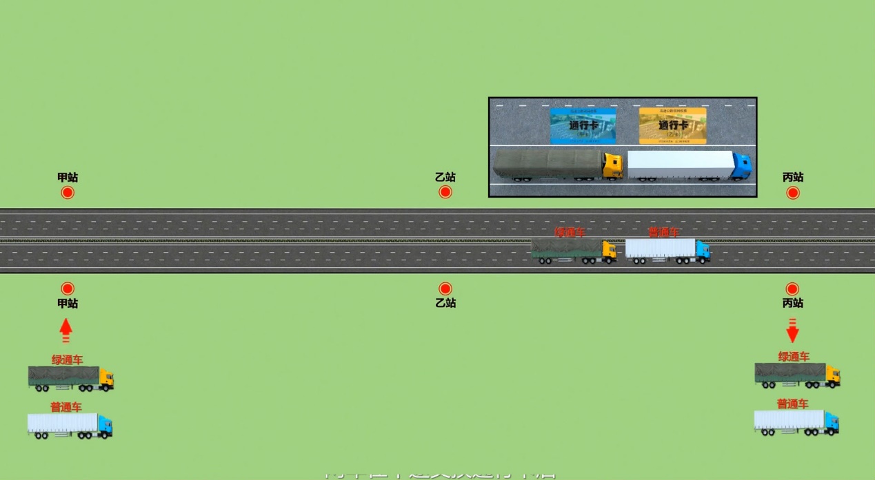 5、绿通车和普通车均从甲站同向驶入高速,中途绿通车从乙站免费出高速后,再掉头领卡进高速,此时普通车取甲卡、绿通车取乙卡,两车在中途交换通行卡后变成普通车持乙卡、绿通车持甲卡,最终两车均从丙站下高速,因普通车持乙卡则出站时只需交纳乙站至丙站25KM的通行费,两车换卡后,普通车偷逃了(())KM的通行费。( )