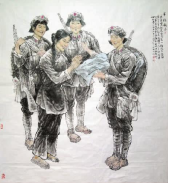 1444.如油画所示,1934年11月湖南汝城县沙洲村,3名女红军借宿徐解秀老人家中,临走时,把自己仅有的一床被子剪下一半给老人留下了。这就是红军长征途中发生的“半条被子”的故事,这一故事主要反映了( )