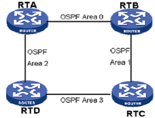 435. 在四台MSR 路由器之间运行OSPF 并划分区域,其连接以及划分方式如图。已知网络中所有链路的OSPF Cost 值都为10,那么关于此图描述正确的是( )。(选择一项或多项)