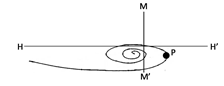 0037.如图所示,位于北纬、自由陀螺仪水平轴上和垂直轴上分别施加控制力矩和阻尼力矩的主轴的运动轨迹,MM’表示子午面,HH’表示水平面,若V2表示地球自转角速度垂直分量ω2引起的陀螺仪主轴运动的线速度,则陀螺仪主轴运动轨迹上的点P的线速度V2的方向为______。