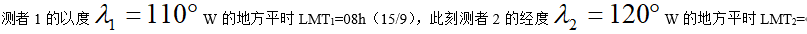 1718.测者以度等于150oE,地方平时等于1200,则经度等于60oE的地方平时为: