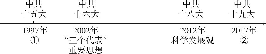 103.张敏同学学完《建设中国特色社会主义》一课后,绘制了中国特色社会主义理论体系不断完善和发展的示意图,留有①②对应的内容用于考考其他同学,四位同学提供的答案如下,正确的是( )