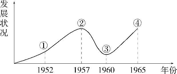 68.下图反映的是中华人民共和国在20世纪五六十年代的农业经济发展状况,出现图中②到③这一变化的主要原因是( )