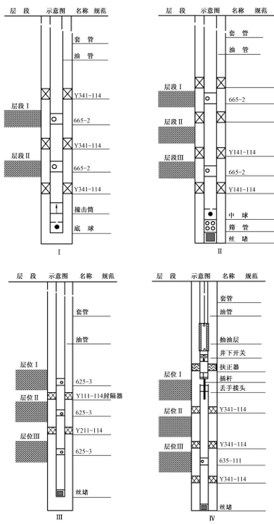 123.在如图所示的分层开采工艺管柱各图例中,()是二级三段分层采油。