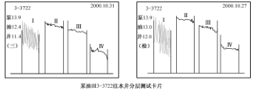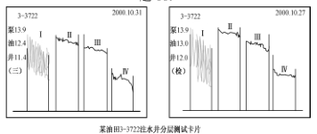440.在如图所示的某注水井实测试卡片中,二个卡片中()是第二层段水量。