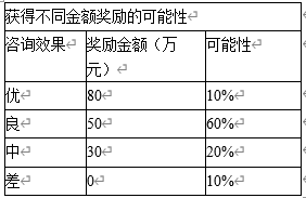 10.2021年1月31日,甲公司与乙公司签订一项咨询服务合同。合同约定,咨询期为1年,咨询费为120万元。此外,可以根据合同履行效果获得一定的奖励,效果分为优、良、中、差四档,对应的奖励金额分别为80万元、50万元、30万元、0万元。甲公司根据历史经验估计其获得不同金额奖励的可能性如下所示。根据上述资料,甲公司应确认的奖励金额为()万元。