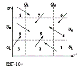47.如图F-9所示电路简述电压无功控制装置在第1、4、7、8区域的调节原理。