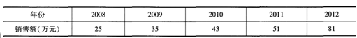 rn该商品2008年至2012年销售额的平均增长量为()万元。