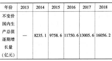 rn某国2013—2018年不变价国内生产总值累计增加()亿元。
