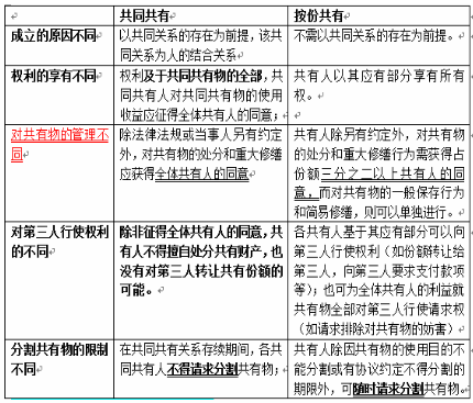 2278.下列关于共同共有和按份共有的区别表述错误的是()。