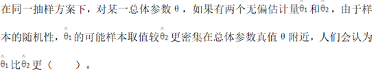 569.总体参数的无偏估计量的方差小于其他的无偏估计量的是()。