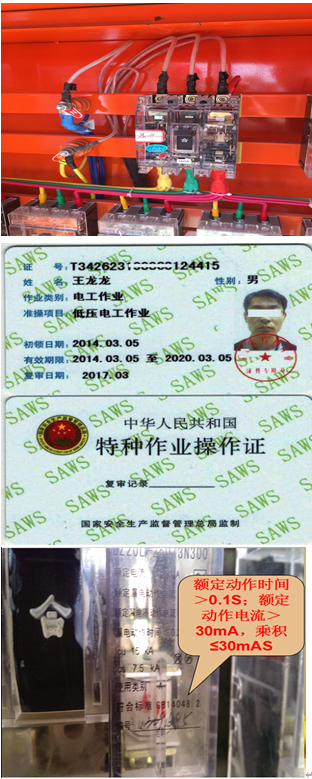 7、2017年8月,某县房建项目,钢筋加工厂一工人弯曲机作业时触电身亡。经查该台弯曲机从分配电箱直接接线,设备金属外壳保护接零贯通,总配箱采用组装箱且电器元件不能提供合格证,经试验总配箱多个漏保漏电动作电流和动作时间均超过规范要求,且项目部配备了一名电工(持安监局发低压电工证),该工程未编制临时用电施工组织设计、无临时用电验收记录。