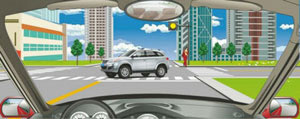 55、驾驶机动车在路口遇到这种情况如何行驶?