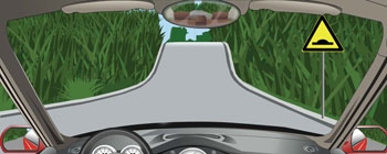 12.右侧标志提醒注前方是驼峰桥。