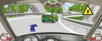 1203.如图所示,驾驶机动车在这样的路段遇前方两车交会应及时减速。