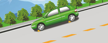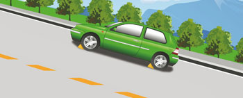 1180.驾驶机动车在这种情况下临时停车后,为避免机动车后溜可将转向盘向右转。