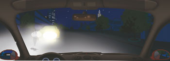1062.夜间会车遇到这种情况要警惕两车前照灯交汇处(视线盲区)的危险。