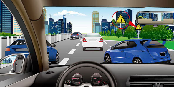 975.如图所示,驾驶机动车遇到前车插入本车道时,可以向右转向,从前车右侧加速超越。