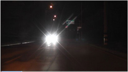972.如图所示,该车在会车过程中未关闭远光灯的做法是错误的。