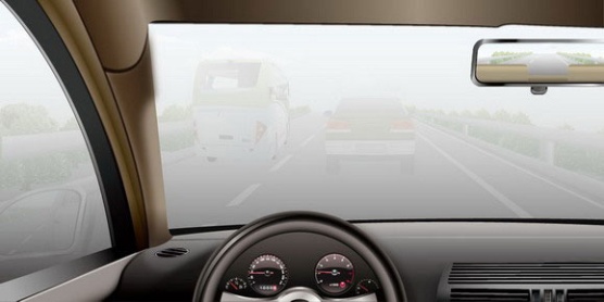 948.如图所示,雾天驾驶机动车跟车行驶,应加大与前车的距离。