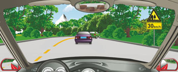723.右侧标志提醒前方有村庄或集镇,建议速度30公里/小时。