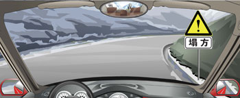 721.右侧标志提醒前方路段有塌方禁止通行。