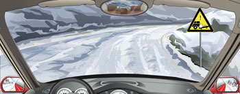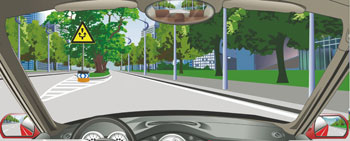 718.图中标志提醒障碍物在路中,车辆从两侧绕行。