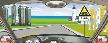 703.右侧标志提醒前方路交口向右100米是渡口。
