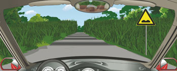 697、右侧这个标志提醒前方山口注意横风。