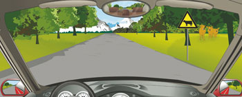 686、右侧标志警告前方路面两侧变窄长度为5公里。