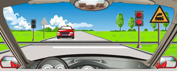 在铁路道口遇到两个红灯交替闪烁时要停车等待。