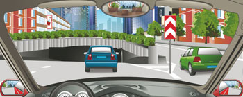 653、右侧标志表示前方是分流路口。