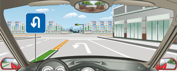 630、该车道路面导向箭头指示前方路口仅能掉头。