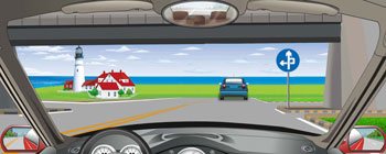 571、如图所示,夜间驾驶机动车遇对方—直使用远光灯,无法看清前方路况时,应降低车速,交替使用远近光灯提醒对方关闭远光灯,并向右侧略微转头,避免远光灯直射。