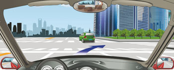 368、驾驶机动车在这个路口左转弯要提前按导向箭头指示向左变更车道。