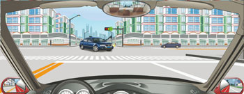374、如图所示,驾驶机动车在路口遇黄灯亮时,应停车等待。