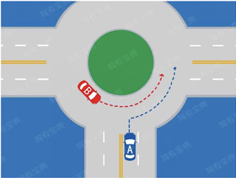 117、如图所示,在这种情况下,A车应该让路口内的B车先行。