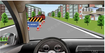 86、如图所示,驾驶机动车通过小区遇到这种情况,应减速行驶,随时准备停车。