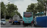 83、如图所示,驾驶机动车在公交车站遇到这种情祝要迅速向左变更车道绕行。