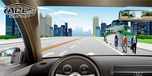 74、在这种情况下要避让左侧从公交车后横穿的行人。