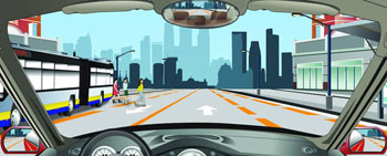 74、在这种情况下要避让左侧从公交车后横穿的行人。