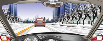1086.驾驶机动车在冰雪路面怎样跟车行驶?
